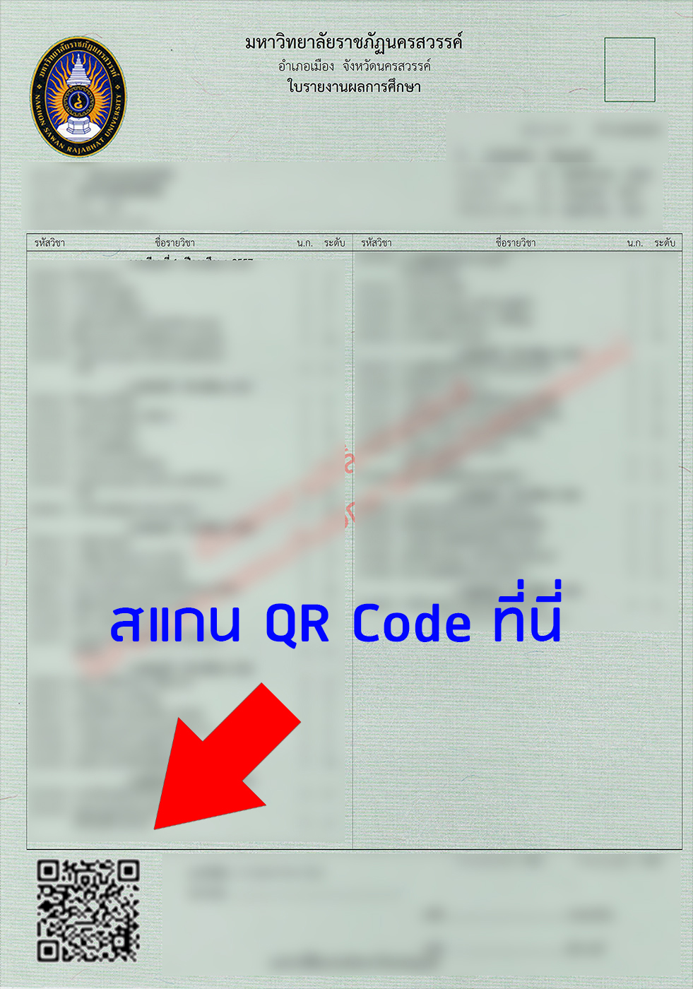 - หากพบข้อมูลระบบจะแสดงเอกสารของมหาวิทยาลัยราชภัฏนครสวรรค์ พร้อมลายน้ำ เพื่อแสดงว่าเอกสารนี้ได้ถูกออกโดยระบบของมหาวิทยาลัยราชภัฏนครสวรรค์จริง